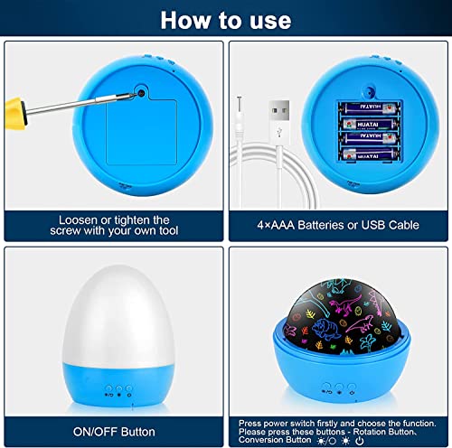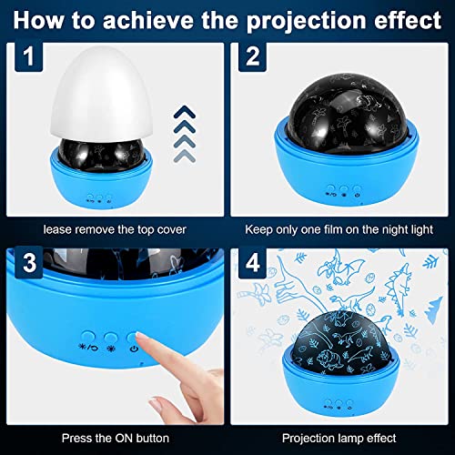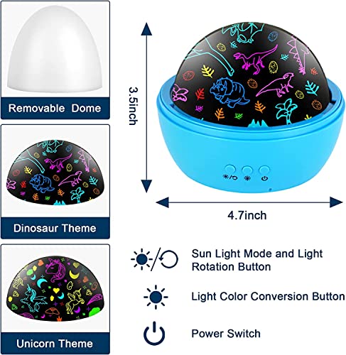 Unique design: contains two different films of dinosaur and unicorn, unique unicorn pattern and dinosaur pattern design. The light colour can be adjusted as desired, the brightness of the light is not dazzling, does not irritate the child’s eyes and does not affect children’s sleep for 3 4 5 6 7 8 9 children